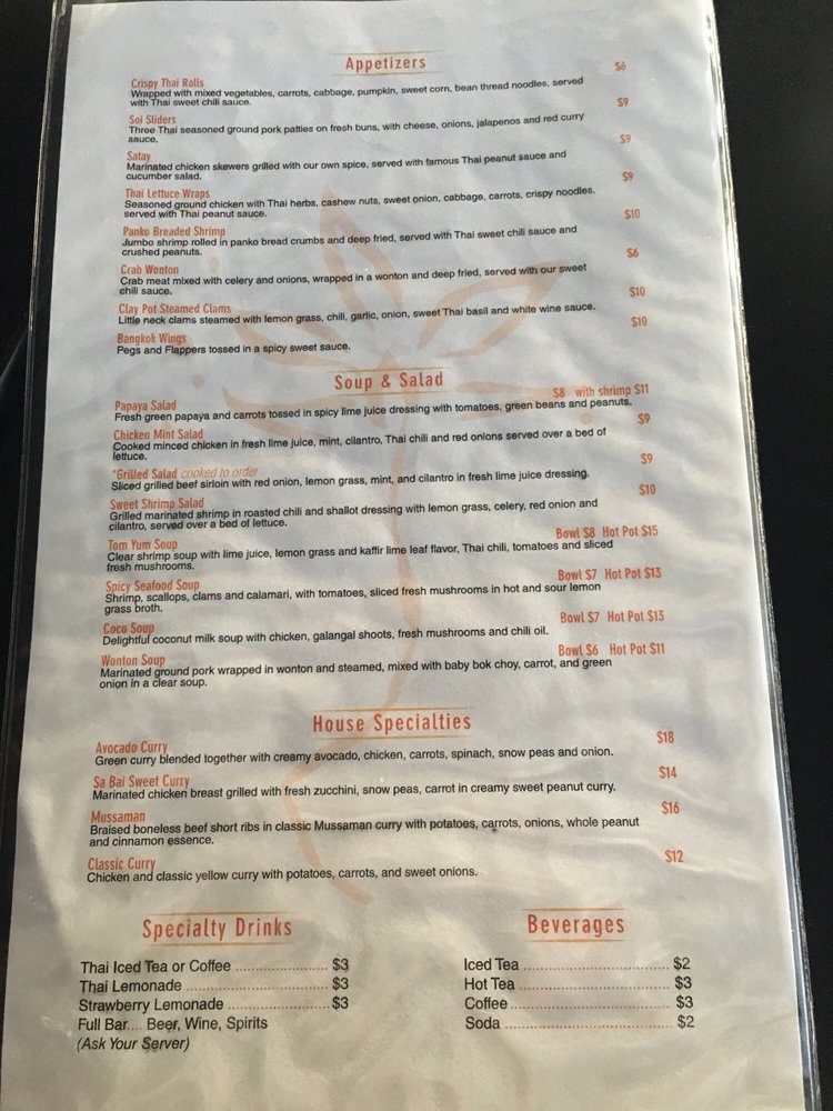 Welcome to SaBai Modern Thai, your go-to destination for contemporary Thai cuisine in Phoenix. Located at 4121 E Thomas Rd, this charming eatery offers a delightful range of dishes that blend traditional flavors with a modern flair. Whether you're dining in or opting for the convenient drive-thru, you'll find favorites like crab wontons and aromatic coconut soup.